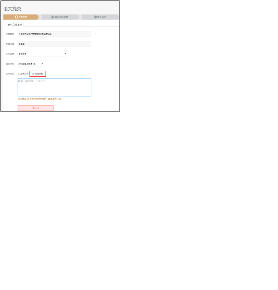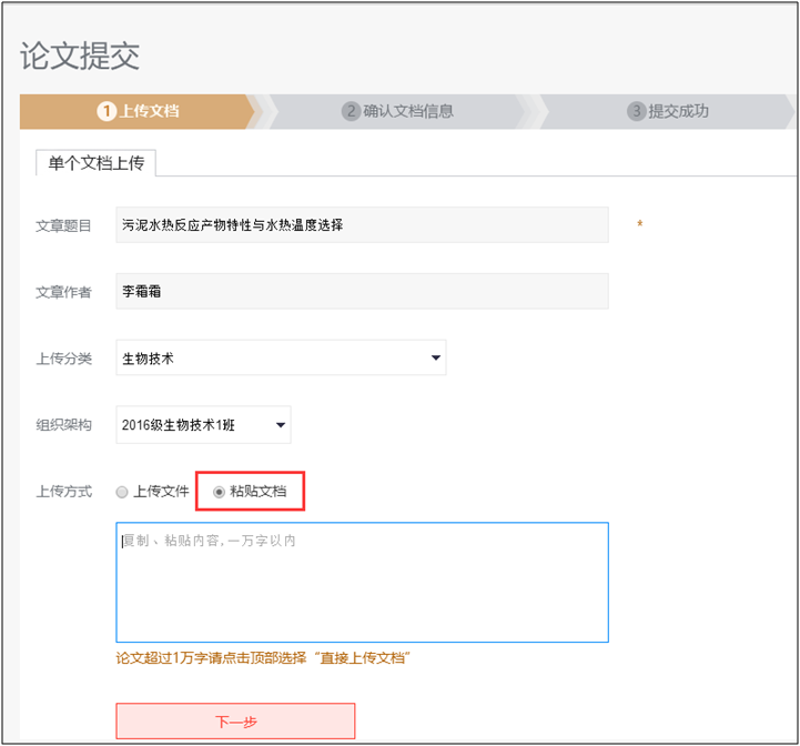 也可选择直接粘贴文字(粘贴文字在1万字以内,如超出范围,请直接选择上传文档)