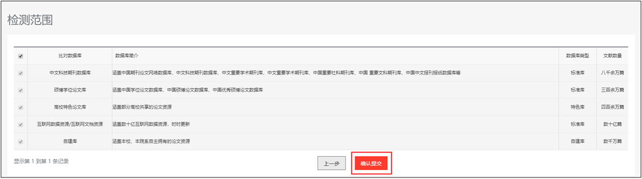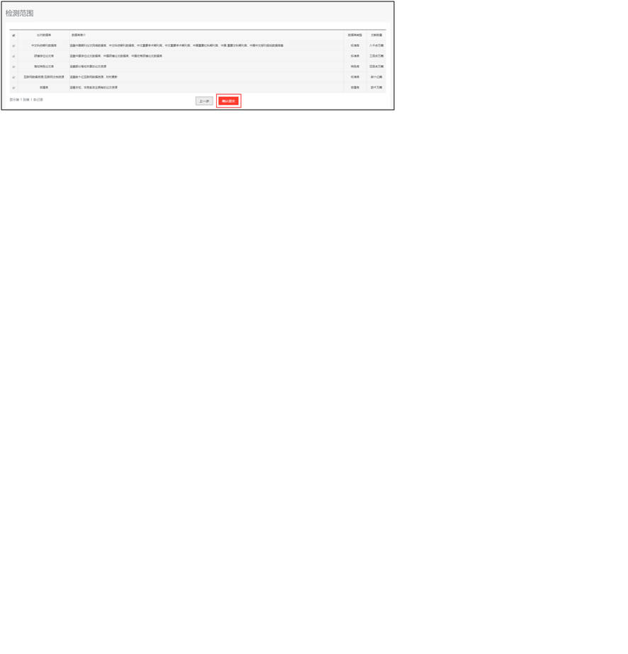 8.检测范围-确认检测范围的比对数据库,点击确认提交