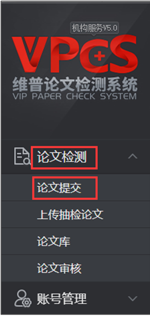 2.登陆后,选择论文检测--论文提交功能