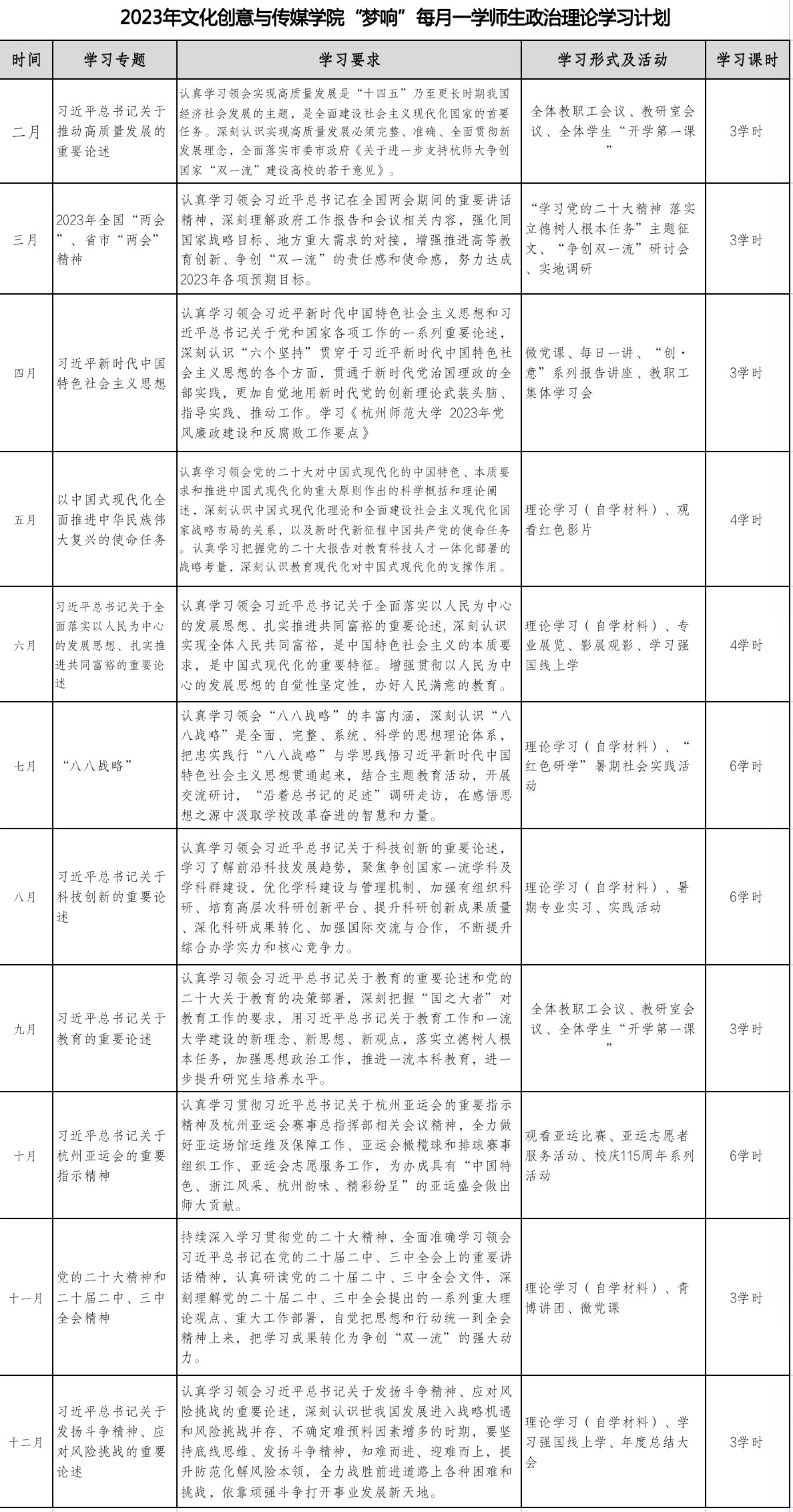 2023年日本无码a片 “梦响”每月一学师生政治理论学习计划