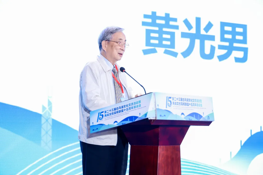 著名文化学者、原台湾艺术大学校长黄光男致辞表示,五千年文明是中华民族璀璨智慧的结晶,而文化创意产业承载着传承与创新的重要使命。两岸高校作为中华文化的传承者与发扬者,拥有深厚的文化底蕴,也必将在文化创意产业的探索与实践中书写中华文化繁荣兴盛的新篇章。