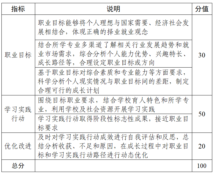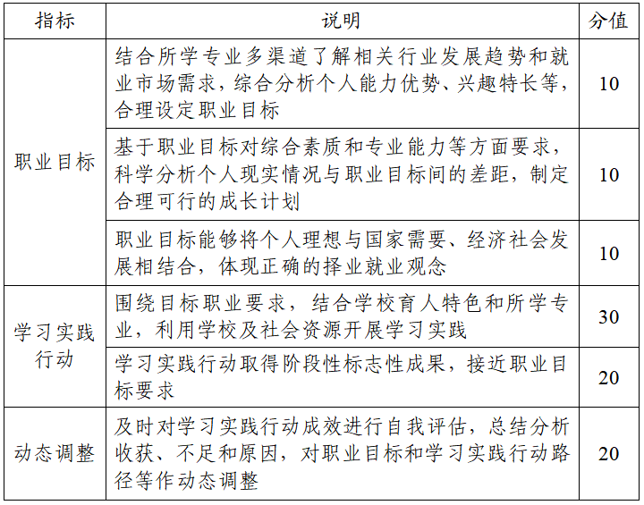 考察学生树立生涯发展理念并合理设定职业目标、围绕实现目标持续行动并不断调整的成长过程,通过学习实践提升综合素质和专业能力,体现正确的择业就业观念。
