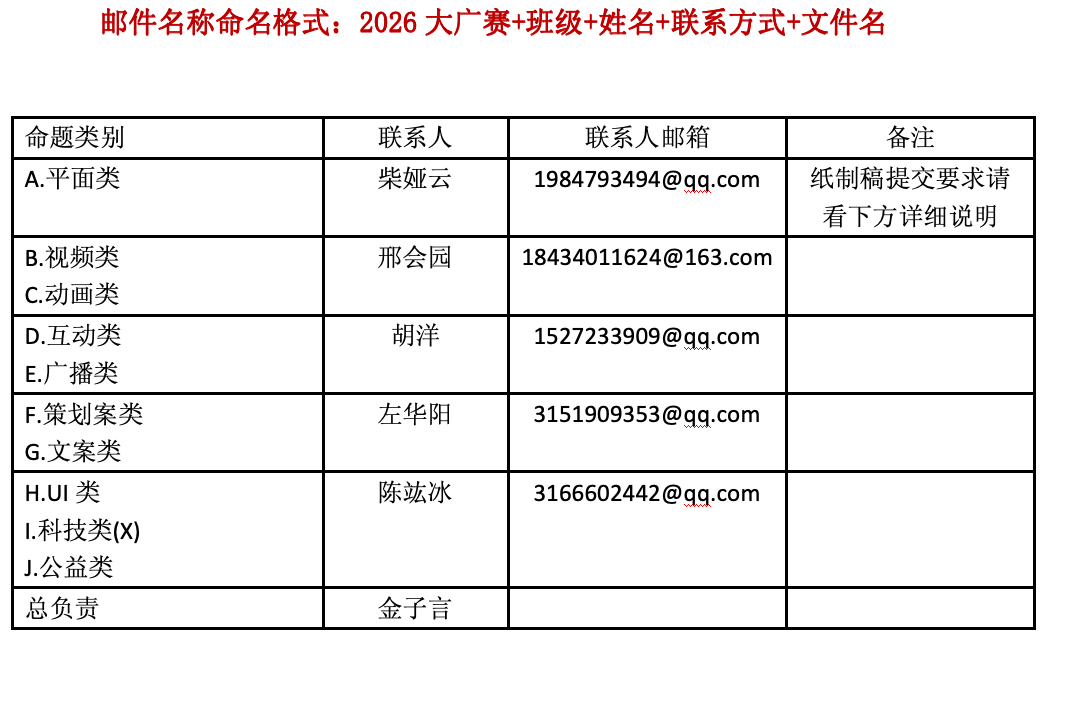 影视广告、微电影广告、动画类、策划案类UI类,科技类不超过5人/组。